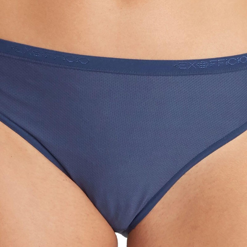 - Breathable Design - The perfect underwear for travel, the ExOfficio Women's Give-N-Go 2.0 Bikini Brief is designed for a snug active fit and lower rise, ideal for high-energy activities, and made with an ultralight breathable mesh fabric that supplies airflow to keep you cool on the beach, plane, or road tripping car