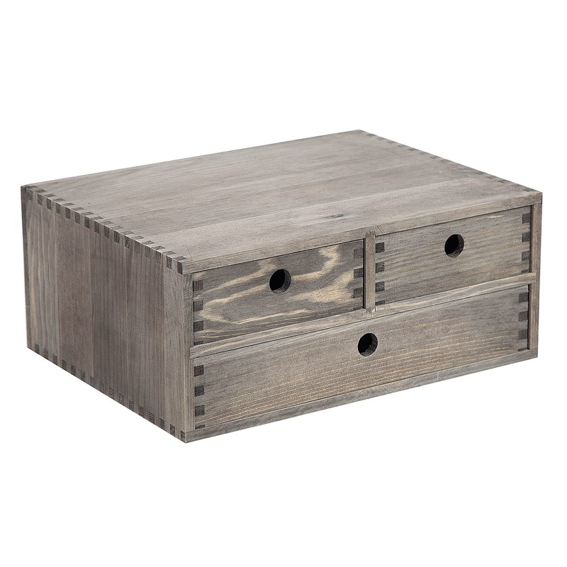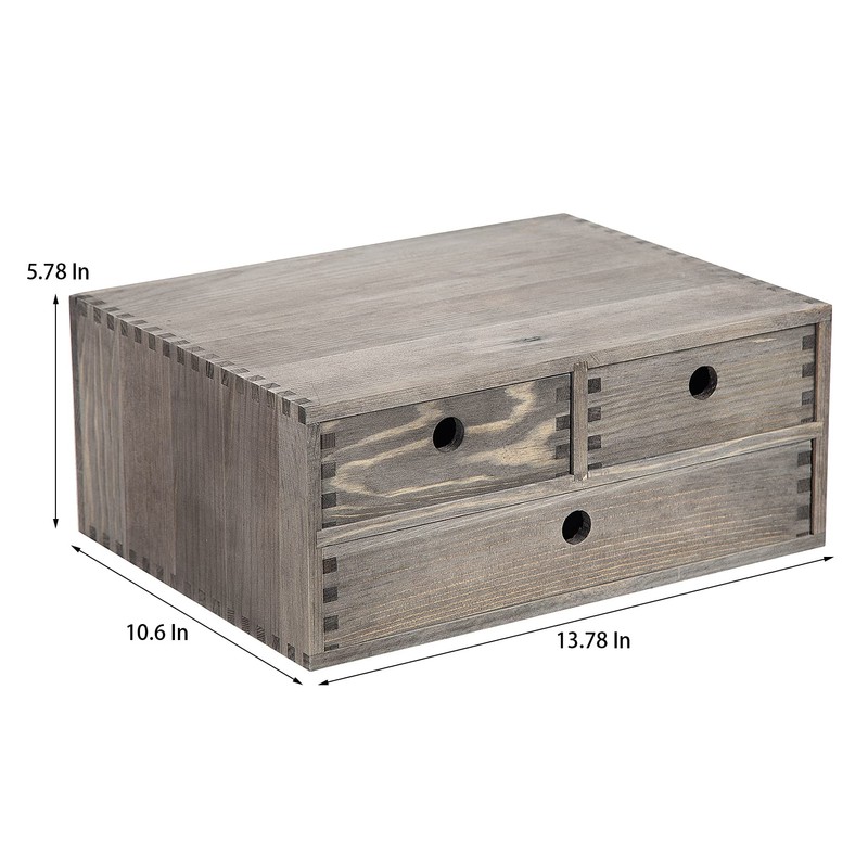 ExoLiry Rustic Stone Gray Wood Desk Storage Cabinet with Drawers Round Cutout Handles Countertop Wooden Organizer Table Top Stand Box Holder Jewelry Keepsake Caddy Mini Dresser Home Office Farmhouse