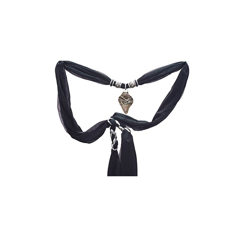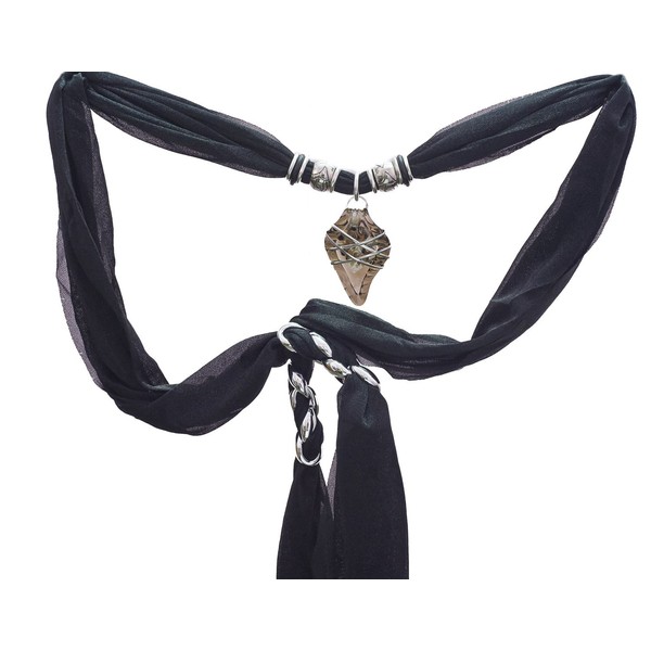 Exotic India Scarf Necklace with Pendent - Art Silk - Color Black