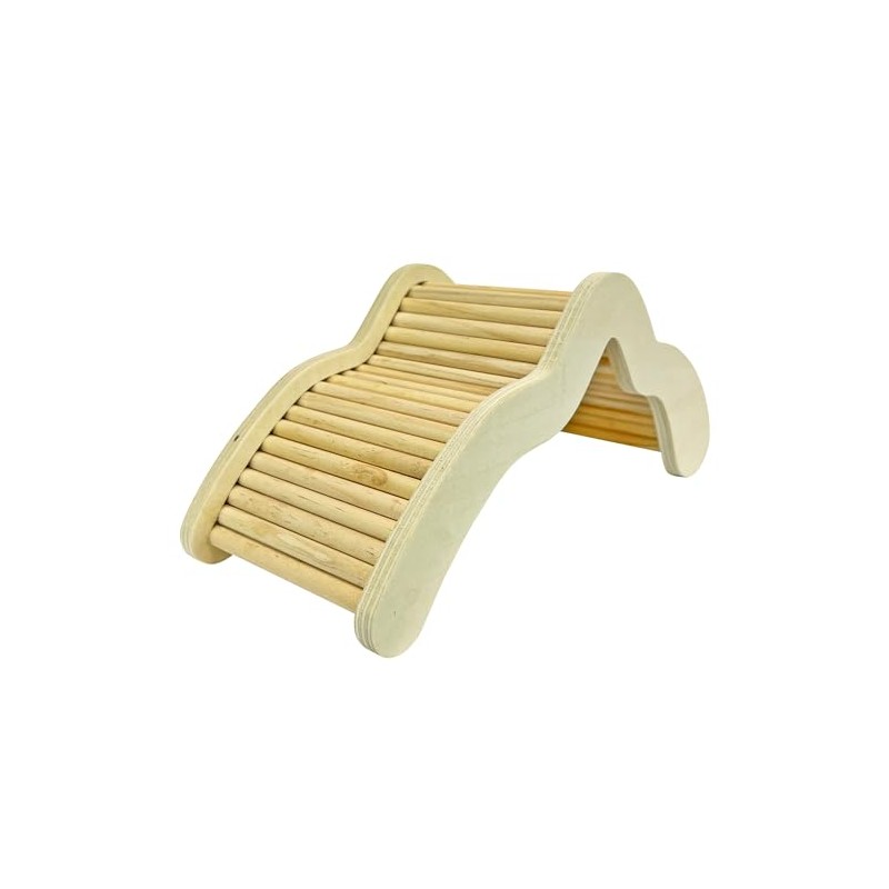 The NativeCritter Wave Bridge is an all-natural Birchwood climbing accessory and hideaway for small animals such as Dwarf hamsters, Golden hamsters, Degus, Gerbils and other small animals. This hand-made accessory comes fully assembled and is made with 100% pet safe chewable woods, no gaps to catch claws. The textured surface provides easy climbing access. Your furry friend will enjoy climbing and hiding out in their own Wave Bridge. It's designed to fit most small animal habitats and provides the perfect accessory for climbing. A cozy, comfortable space for pet to hide and climb 100% safe - No dangerous materials that could harm your pet Made of all-natural untreated kiln-dried birch woods, built to last Designed to fit most habitats Measures 9 x 4 x 11 inches