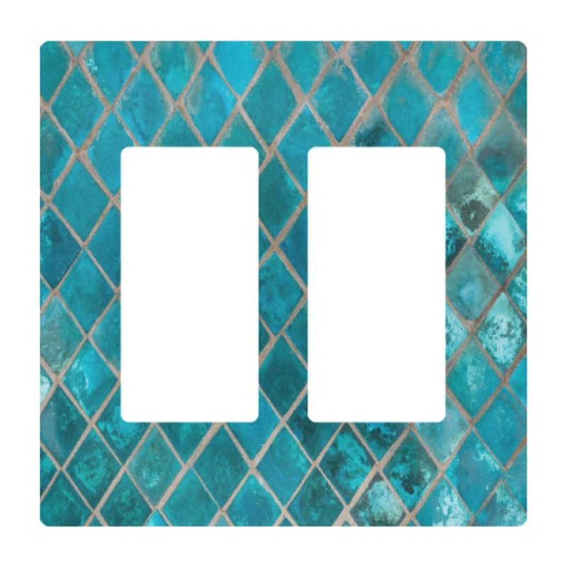 Exotic Turquoise Ceramic Mosaic Tile Wall Plate Cover Size 3-Gang 4.6" x 6.5", Triple Rocker Switch Plates, Unbreakabl Light Switch or Receptacle Outlet Wall Plate