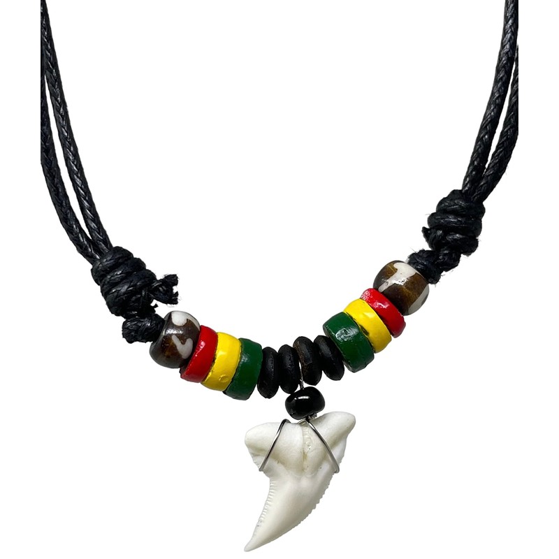 exoticdream Shark Tooth Rasta Short Beads Necklace Handmade Hawaiian Style Beach Boy Men