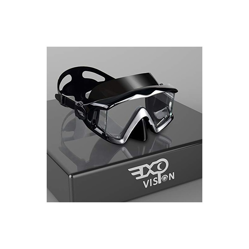 EXP VISION Adult Pano 3 Window Scuba Diving Mask, Tempered Glass Snorkel Mask Anti-Fog Swim Mask No Leakage Swim Goggles with Nose Cover Snorkeling Gear for Snorkeling, Freediving, Swimming (Black)