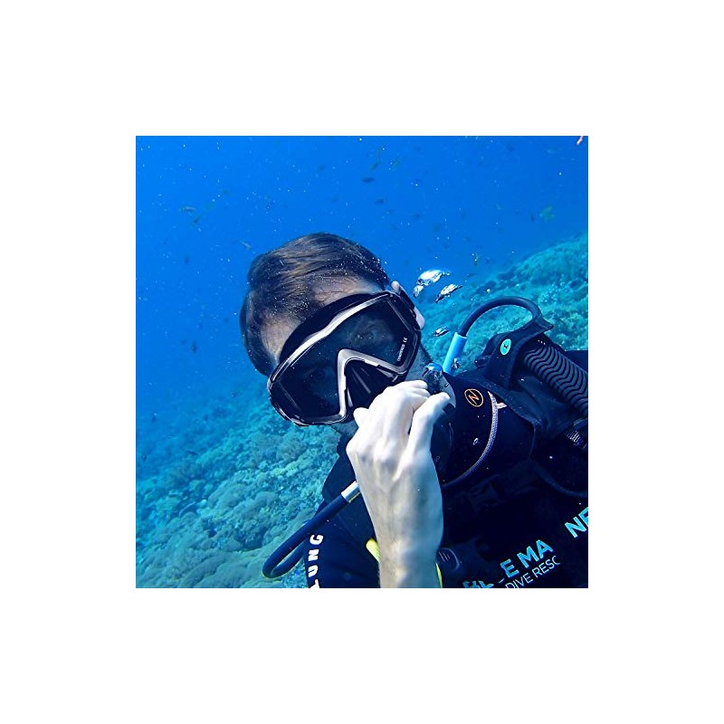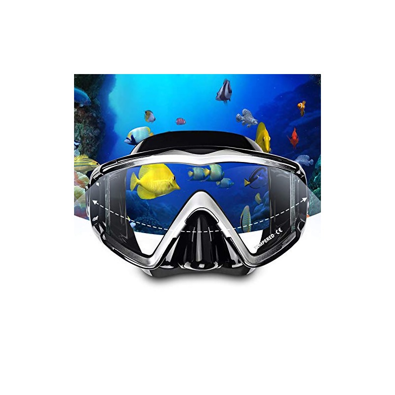 - [Anti-Fog Lens]: Scuba diving mask used ultra-clear no-tint glass and an anti-fog coating applied to the inner surface of the tempered lens, providing you a crystal clear view to discover the vibrant fish life and delicate coral under the sea.