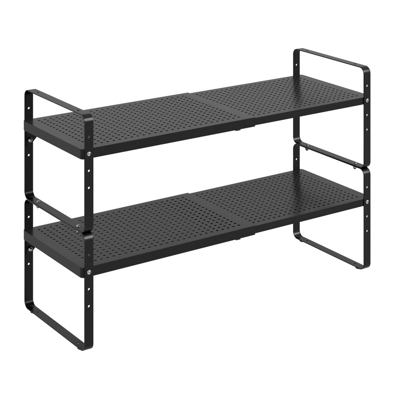 - 【Expandable &Stackable Cabinet Shelf Organizer】The width and height of the expandable kitchen cabinet shelves can be adjusted according to your needs, which is a very practical storage shelf. The dimensions before expansion are 16.5 "L x 10.2" W x 9.6 "H. Its length can be extended from 16.5" to 27". You can also stack the 2pack shelves together to form a two-layer storage space. Or it can be used as 2 single shelves separately.