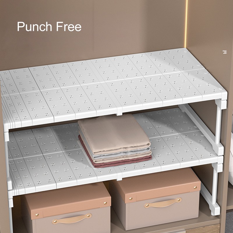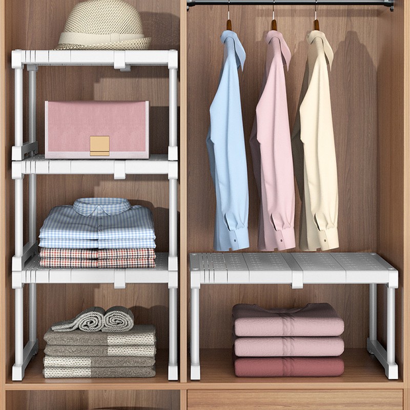 1、Multifunctional Design: The closet storage shelf is suitable for different scenes such as cabinets, wardrobes sinks, and vegetable basins, to meet various storage needs. 2、Sorting Storage: The cabinet shelf can effectively divide the space, making the items sorted in order, easily find the required items, time and effort saving. 3、Durable Material: The closet shelf organizer is made of premium materials, having strong weight capacity, stable and reliable, ensuring long term use without deformation. 4、Easy Installation: The expandable closet shelf organizer is easy to operate, no additional tools required, easy to install on the bottom of the cabinet, saving installation time and cost. 5、Adjustable Design: The closet tension shelf has adjustable design, the length can be freely adjusted according to the space needs, to adapt to different sizes of cabinets and wardrobes.