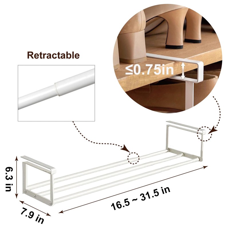 - [Adjustable] It can freely adjust the length according to different space needs. It can be easily hung under the shoe cabinet partition, making full use of vertical space without occupying floor area. It is very suitable for small spaces.