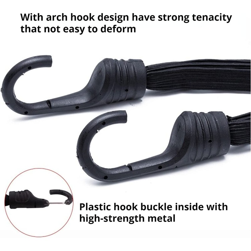 - Advance materials: the expander with hooks made of high-quality nylon and fibre materials, adopts multi-strand high elastic rope, with high elastic and strength, the expander with hooks can strap your helmet or luggage real steady and tight.