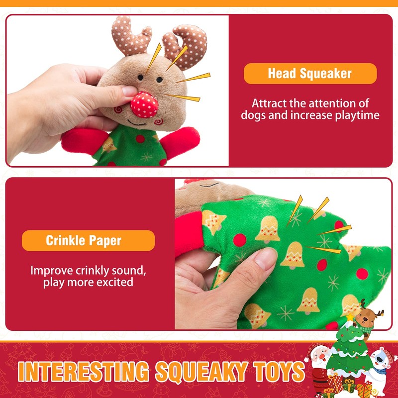 - CHRISTMAS ATMOSPHERE:Santa Claus, moose and gingerbread man shape makes the toy has a strong Christmas atmosphere, both as a dog toy, but also as a decorative item