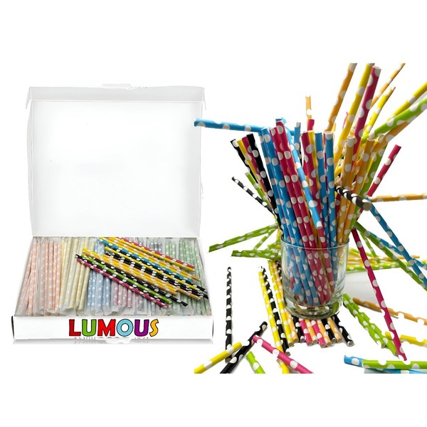 EXPECTRO Paper Straws, 450 Pack Paper Drinking Straws Bio Degradable Drinking Paper Straws Wedding Party, Party Straws, Restaurant, Juice Drinking Straws (450Pcs Wrapped Multi Polka Dot)