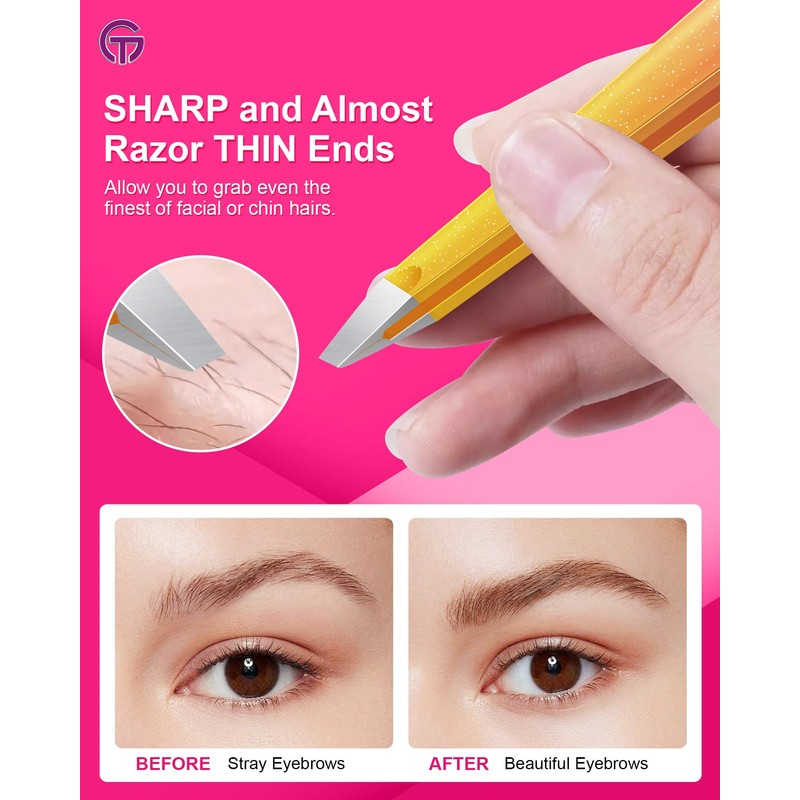 - 【Easy to Use and LAST LONG TIME】Constructed from durable stainless steel, the GlamTweeler Expert Eyebrow Hair Removal Tweezers promise longevity without compromising on performance. The hand-filed tip is great for pulling the smallest and finest of slivers and splinters with ease, easy to hold and use, grips hairs better than other tweezers.