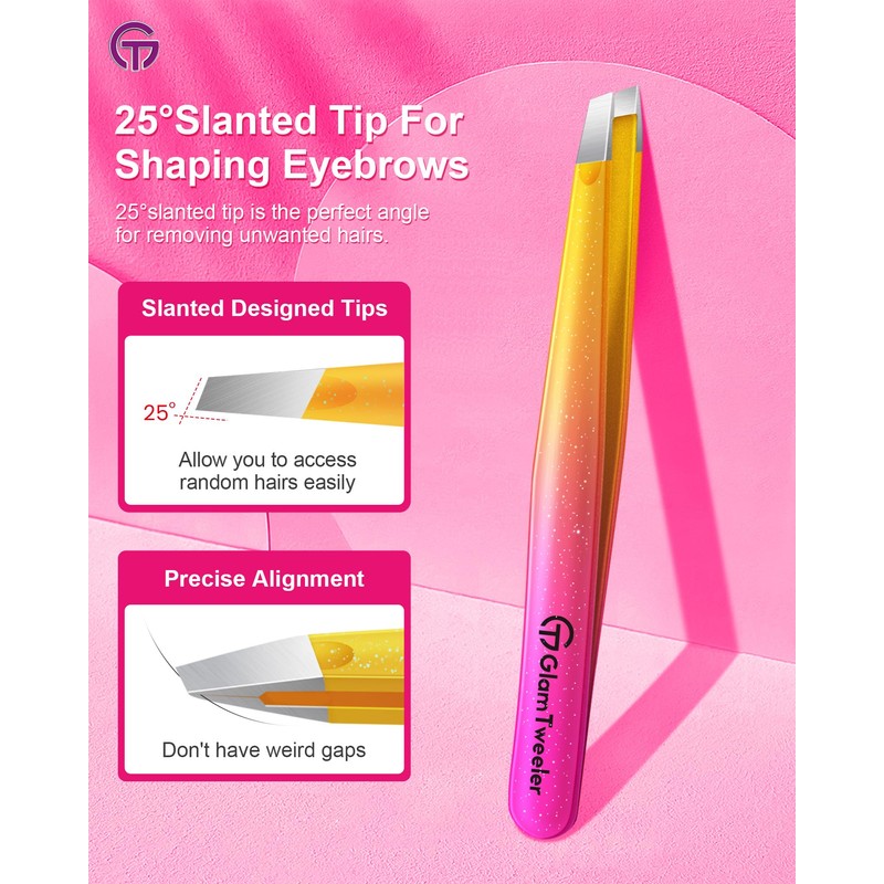 - 【Ultra Thin SHARP SLANT TIP Tweezer】25° slanted tip is the perfect angle for removing unwanted hair. You can use the tweezers for everything from plucking eyebrows and facial hairs to removing splinters, embroidery and other stitches, etc. The GlamTweeler Expert Tweezer is sharper than most others, so just be careful the first time you try it.