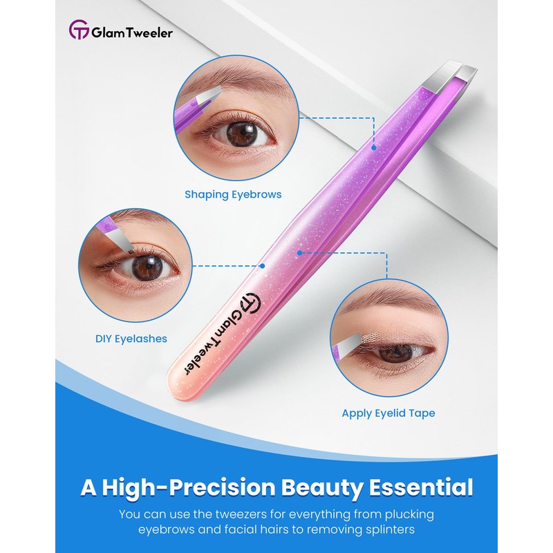- 【SHARP SLANT TIP Tweezer】25° slanted tip is the perfect angle for removing unwanted hair. You can use the tweezers for everything from plucking eyebrows and facial hairs to removing splinters, embroidery and other stitches, etc. The GlamTweeler Expert Tweezer is sharper than most others, so just be careful the first time you try it.