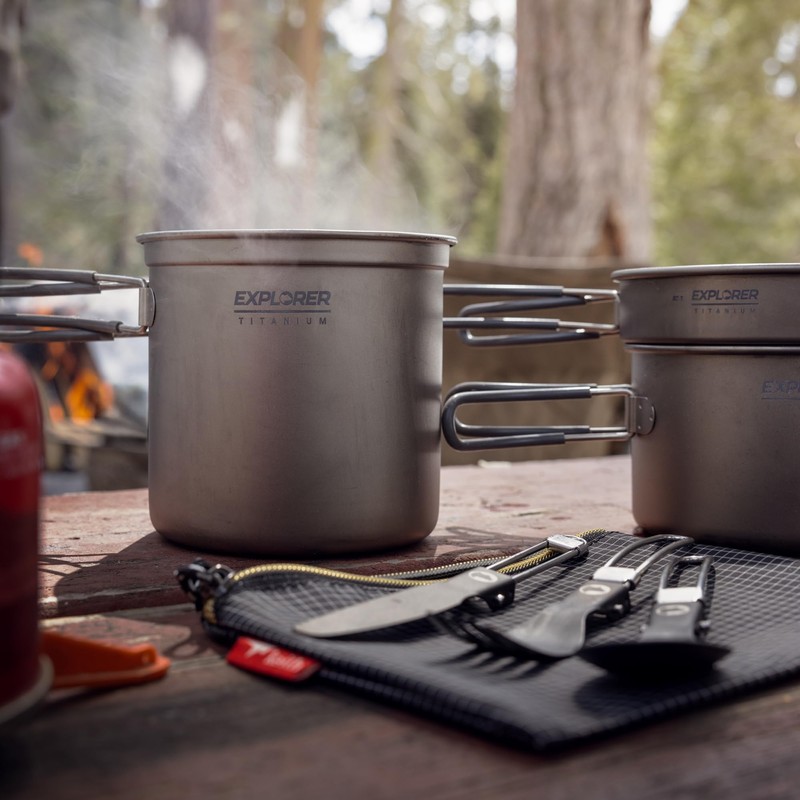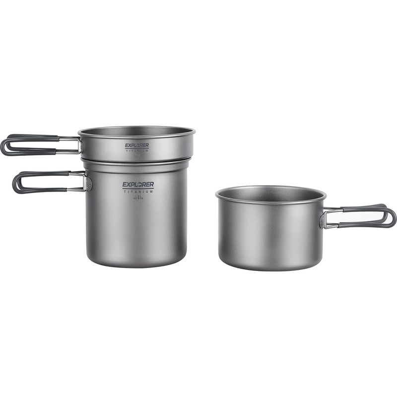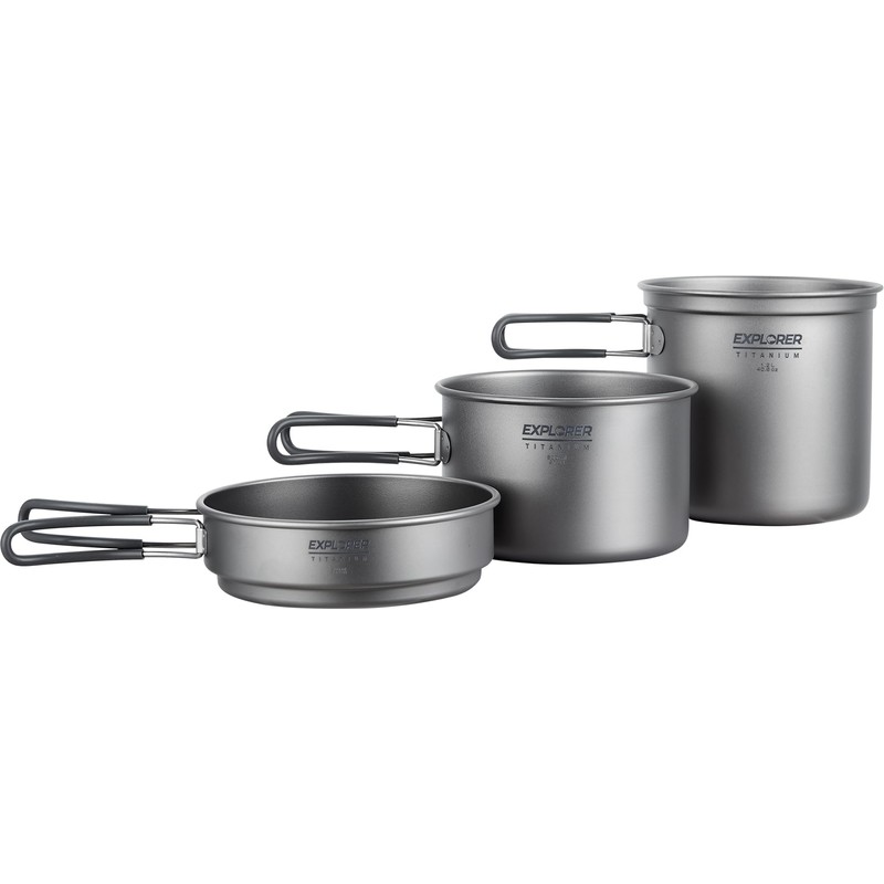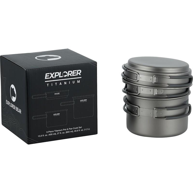 Explorer Bear Titanium Stackable Camping Cooking Pot Mess Kit Set