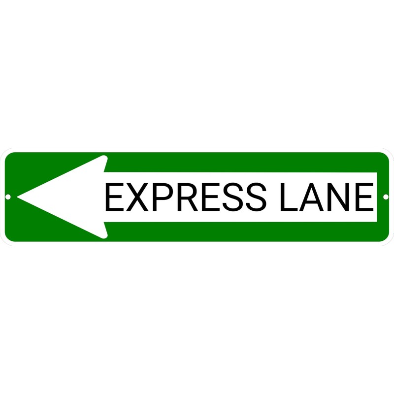 EXPRESS LANE Green Left Arrow 24 x 6 inch Aluminum Composite Sign