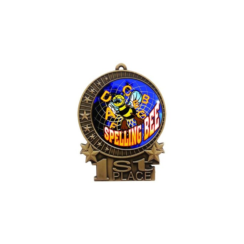 Express Medals Large 3 inch Solid Metal 1st Place Gold Spelling Bee Medal Trophy Award Laser Engraved Personalized with 3 Lines of Your Custom Text and a Neck Ribbon