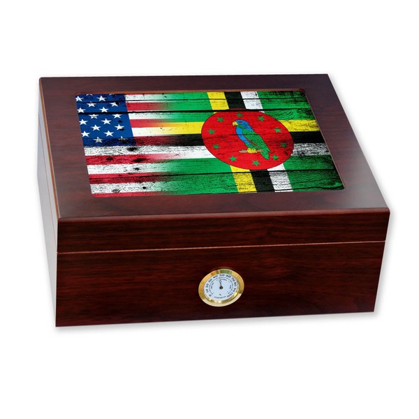 ExpressItBest Premium Desktop Humidor - Glass Top - Flag of Dominica (Dominican) - Wood with USA Flag - Cedar lined with humidifier & front mounted hygrometer.