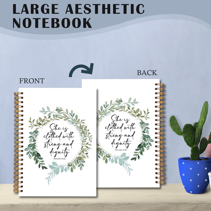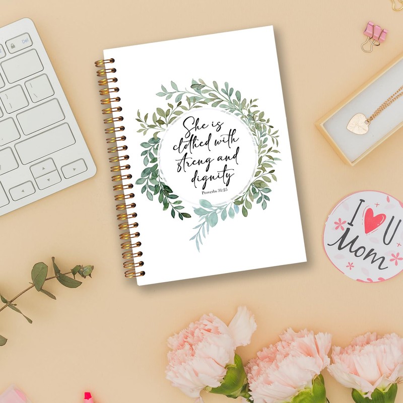 Exqcom she is clothed with strength and dignity Christian Spiral Notebooks, Proverbs 31:25 Bible Journal, Scripture Journals for Writing, Religious Notebook for Note Taking, 5.5x8.3 Inch