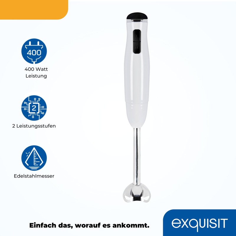 Exquisit MS 3003 we hand blender, 400 watts, 2 power levels, removable metal base, ergonomic handling