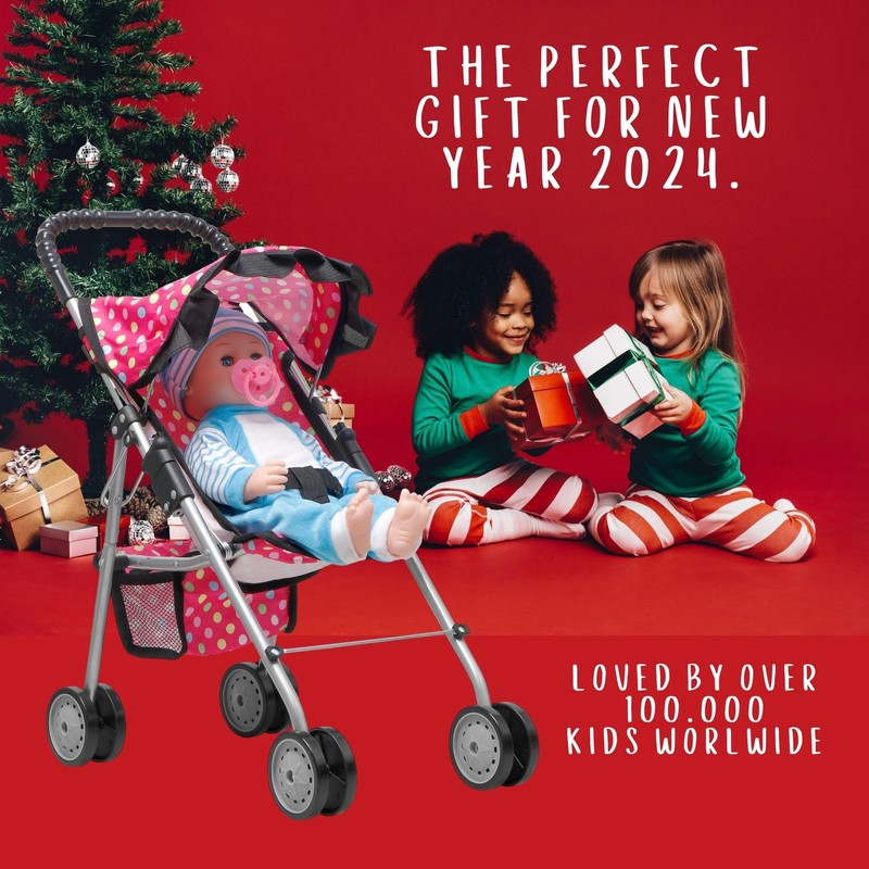 Great addition to your baby play sets – This light stroller will be a perfect gift to your little kid for birthdays, New Year or Christmas as the kids would love to mommy around their favorite baby doll and take them around in their pink doll stroller.