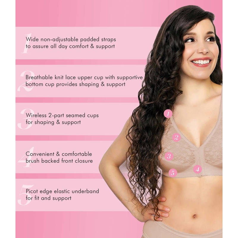 Exquisite Form 9600565 Women's FULLY Lace Wireless Back & Posture Support Bra with Front Closure