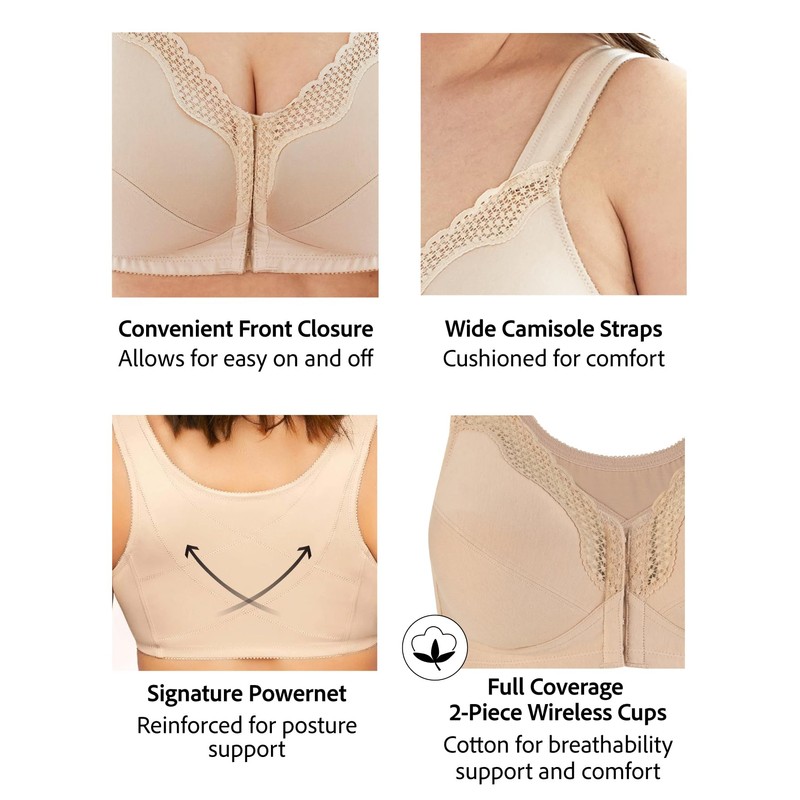 - Posture Support This full figure bra for women is designed with supportive double stitching and a crisscross powernet design on the back to support your back and correct your posture.