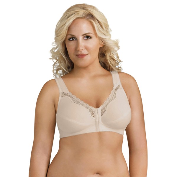 Exquisite Form Women's Front Close Cotton Posture Bra 5100531 Full Coverage, Opaque, Damask Neutral, 34D