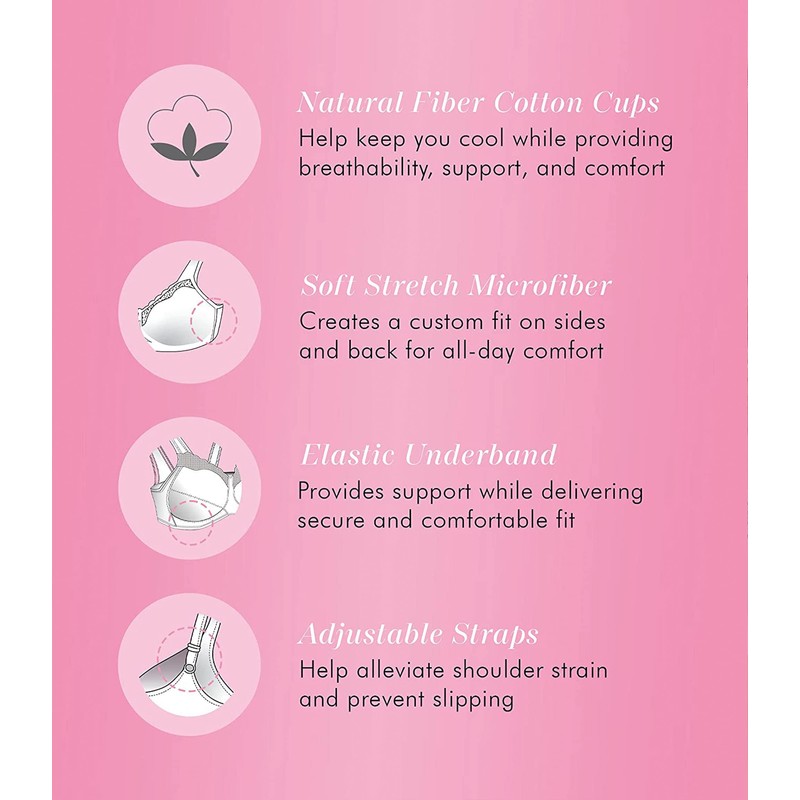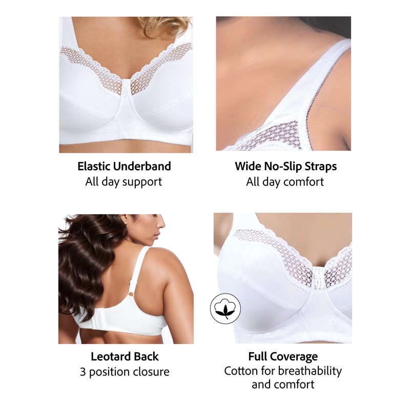 - ULTIMATE COMFORT. This bra not only provides full support — it's comfortable enough for all-day wear too. With wireless cups made with the perfect mix of breathable lace and natural cotton, this bra provides long-lasting comfort.
