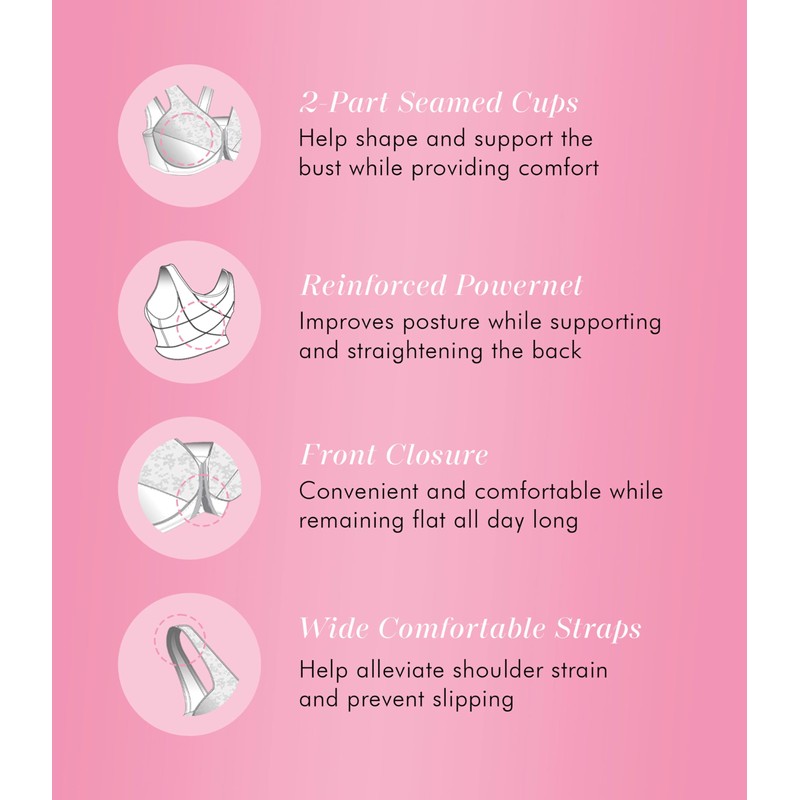 - FRONT CLOSE. The days of blindly reaching behind you to clasp your bra are over. Our lifting and supportive posture bra has a convenient and comfortable brush-backed front-closure to make dressing for the day a breeze.