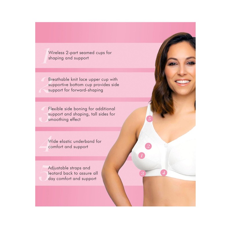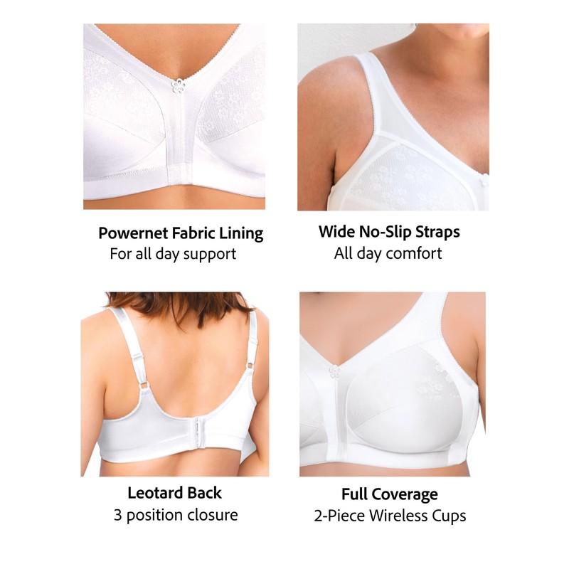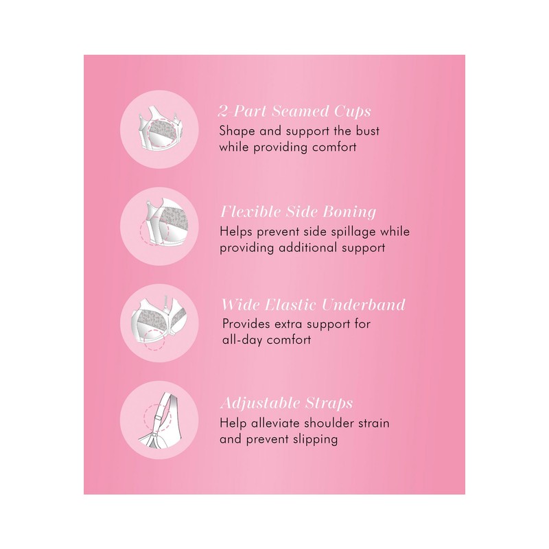 - SUPPORT & SMOOTH. This women's full-support bra is designed with supportive double-seamed cups and flexible side boning for additional back support and a smoothing effect.
