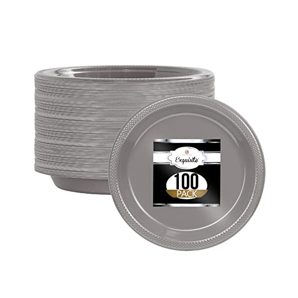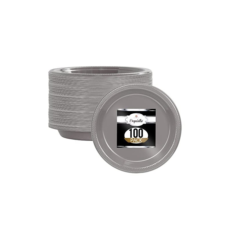 Exquisite Plastic Dessert/Salad Plates - Solid Color Disposable Plates - 100 Count (10 Inch., Silver)