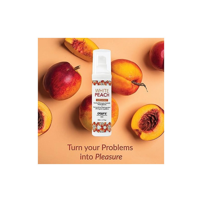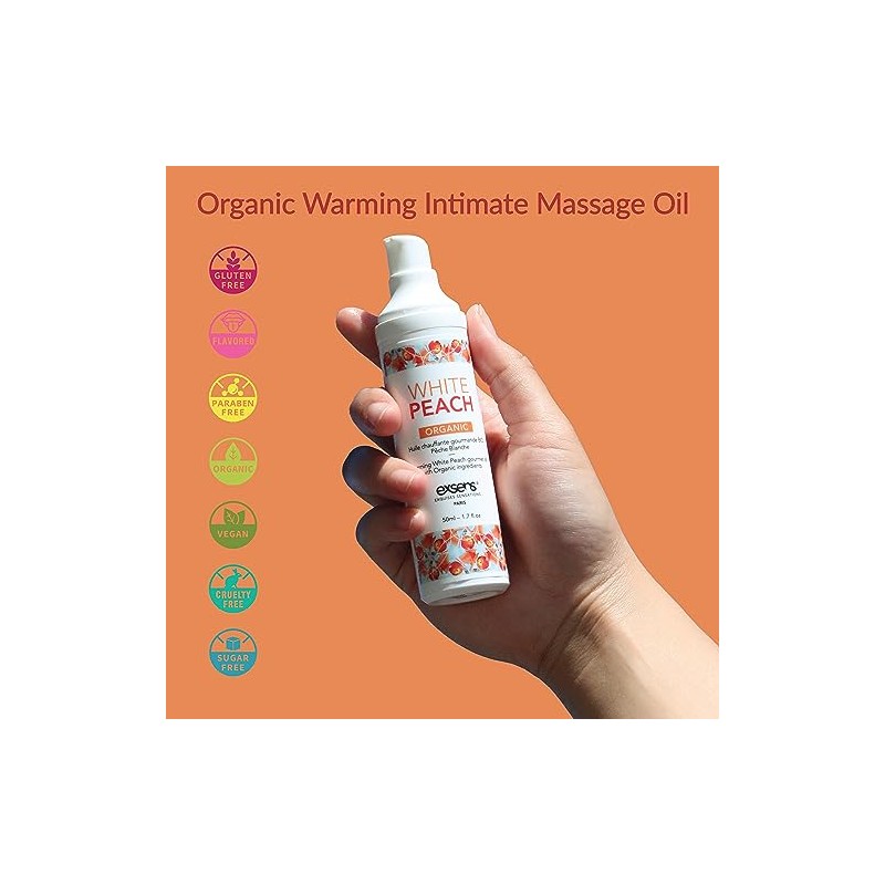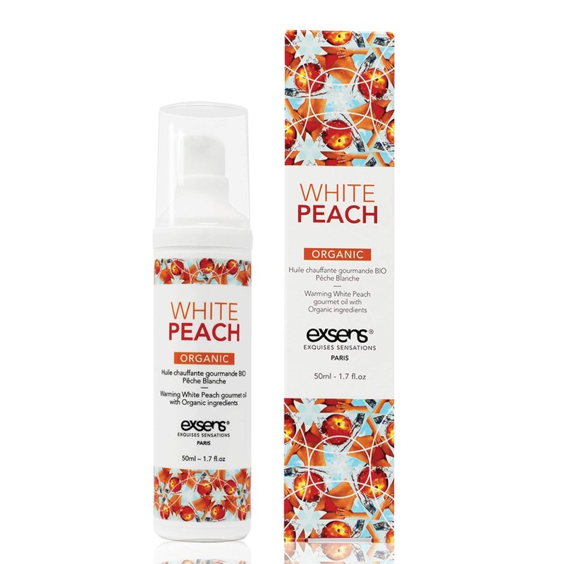 🌟 ⭐ Exsens Aceite orgánico de masaje íntimo de melocotón blanco | Fórmula natural sin parabenos para uso personal y de pareja | comestible, seguro para el cuerpo y apto para preservativos | 1.7 fl oz, 1 unidad ⭐ 🌟