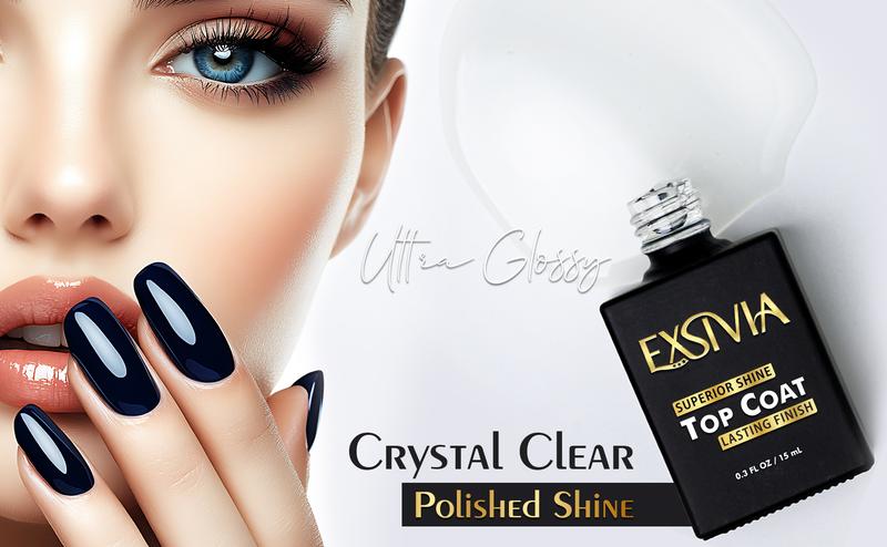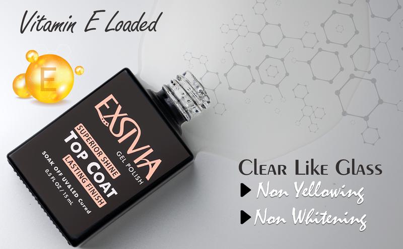 EXSIVIA Nail Gel Top Coat and Base Coat Strengthener, Vitamin E Infused High Endless Glossy Shine, No Wipe, Chip Resistant, Soak Off LED UV Lamp