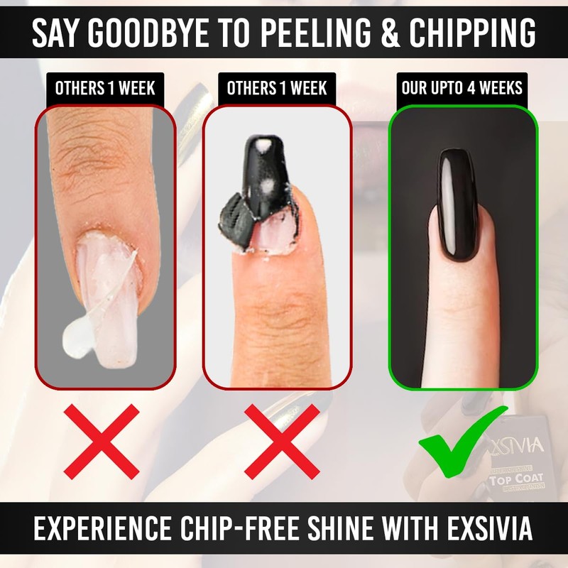 - 25+ Days Endless Shine: EXSIVIA Base and Top Coat delivers long-lasting, scratch-resistant, and chip-free wear for over 4 weeks with proper application, maintaining an endless shine without peeling off.