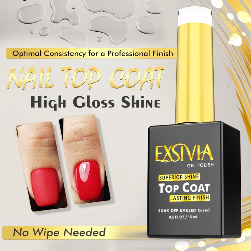 - EXSIVIA Nail Polish Top Coat provides an additional layer of protection, keeping your nail polish color clear and enhancing its shine. This top coat prevents peeling, ensuring a long-lasting manicure.