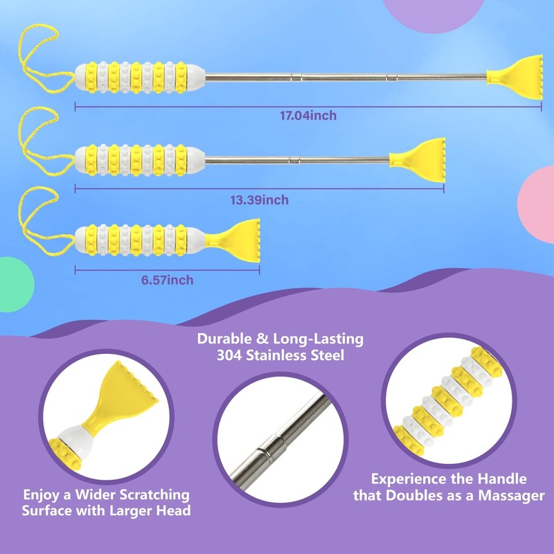 - Extendable & Travel Size: The retractable design allows the scratcher to shorten to just 6.5 inches and extend up to 17 inches, making it easy to store in your bag and perfect for on-the-go use, while still reaching those hard-to-access spots