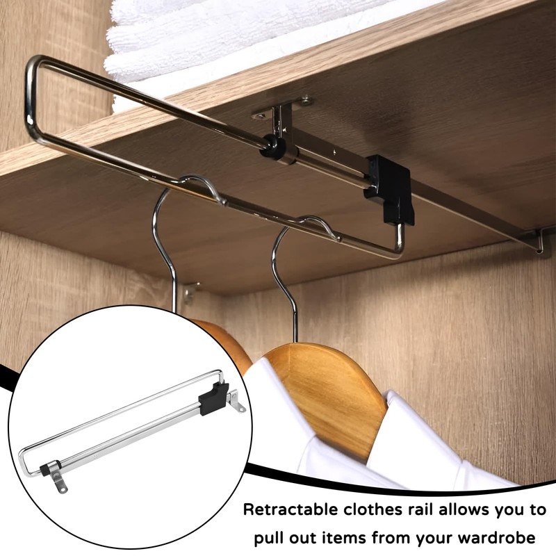 Adjustable design: with the extendable clothes rail, you can easily pull out the hanger and get to all your garments and trousers. The adjustable and robust design also allows you to optimally use the space in your wardrobe and organise it more efficiently, neat, clear and elegant