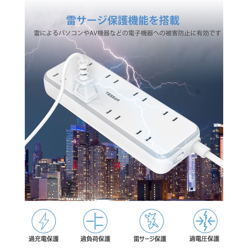 - [Thunder Guard Function] Equipped with an overload switch, this product automatically turns off the power when used in overload or overcurrent, and prevents accidents. It also has a high performance lightning surge absorbing element (baristor), so it is effective in preventing the damage to electronic devices such as PCs and AV devices. (Red light will turn on when surge protection function is working properly) Better safety and more secure at home!