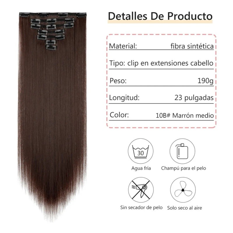 Extensiones Cabello Clip Cortinas Rectas Largas 7 Piezas