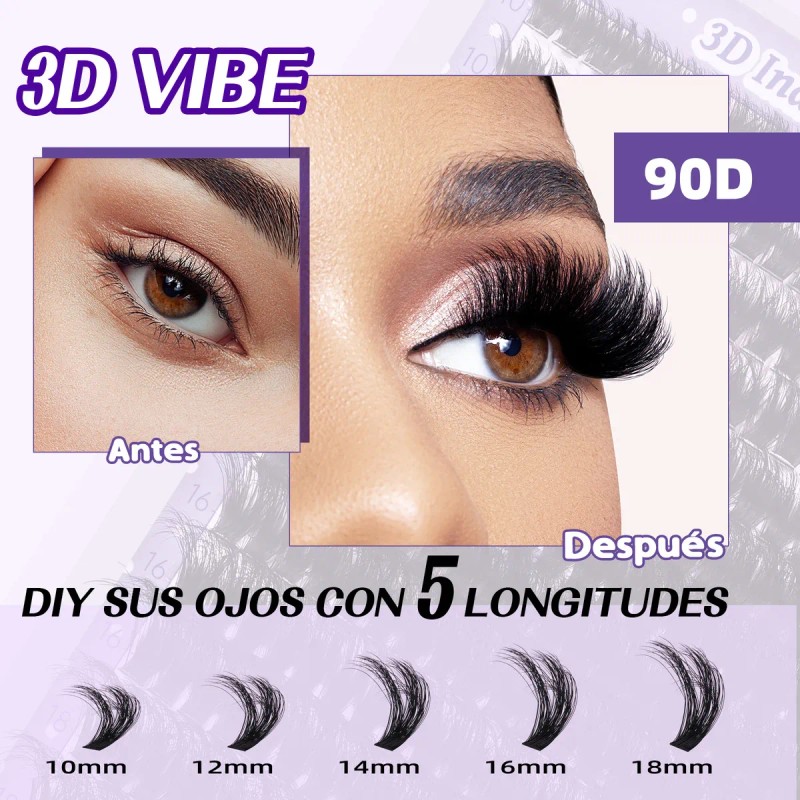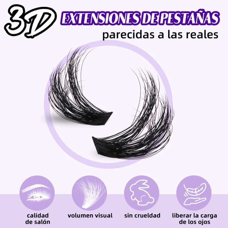*Extraordinario kit de extensiones de pestañas 3D: La característica más importante de este kit es el evidente efecto 3D. Esbeltas por delante y en capas por los lados, dan un efecto de pestañas muy realista.