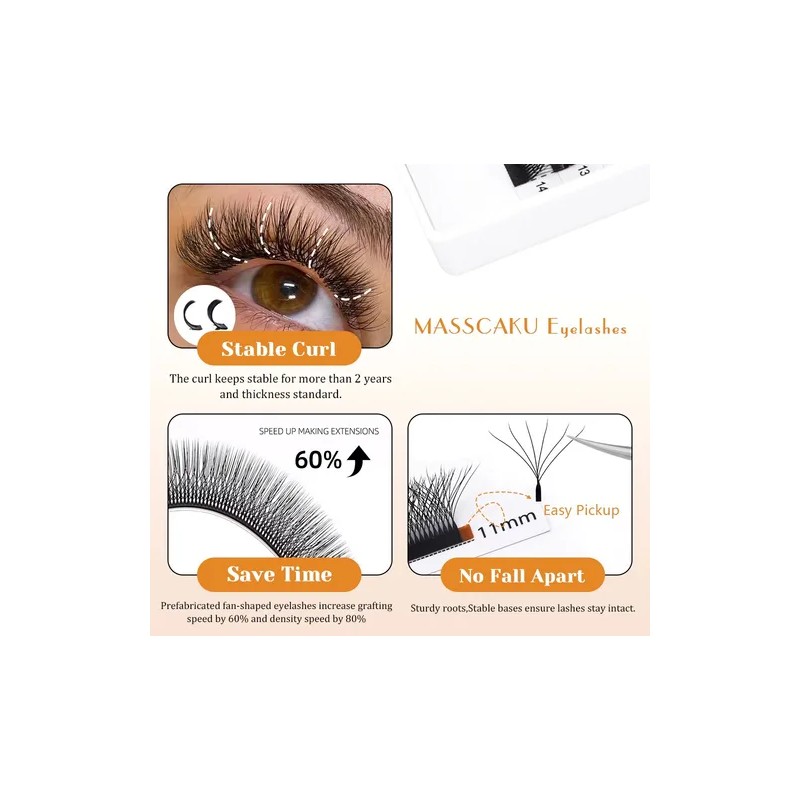 Extensiones De Pestañas Masscaku 5d En Forma De W C/d/l, 8-1
