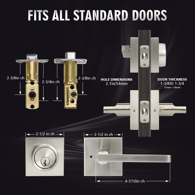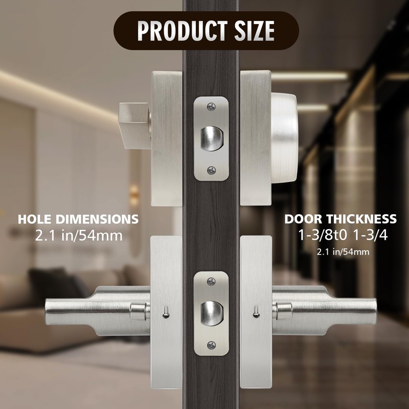 Exterior Door Lock Set with Deadbolt, Front Door Handle Set, Heavy Duty Keyed Alike Privacy Handles, (3Pack-Set,Satin Nickel)