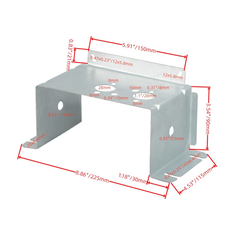 - *U-shaped bracket: length: 8.86" x 225mm; Width: 4.53" x 115mm; Height: 3.54" x 90mm.