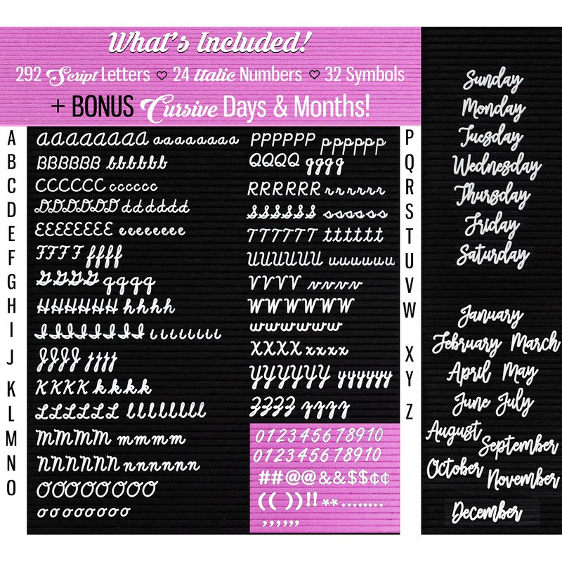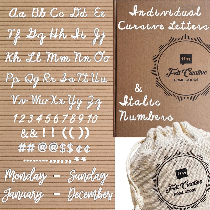 Extra Cursive Letter Set by Felt Creative Home Goods | Set of Script Alphabet Letters, Numbers, Punctuation Over 375 Pieces Extra Bold Plus Cursive Months Days - Board NOT Included