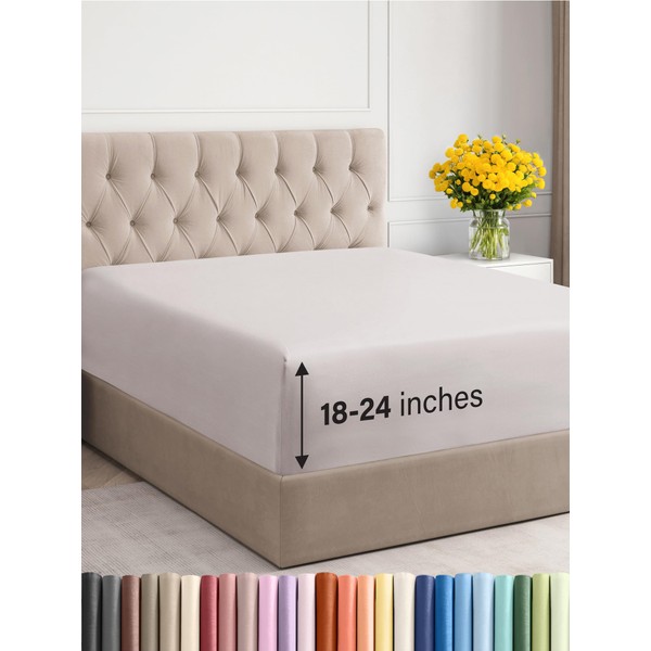 Extra Deep King Fitted Sheet - Hotel Luxury Single Fitted Sheet Only - Easily Fits 18 inch to 24 inch Mattress - Soft, Wrinkle Free, Breathable and Comfy - Extra Deep Pockets Light Grey Fitted Sheet