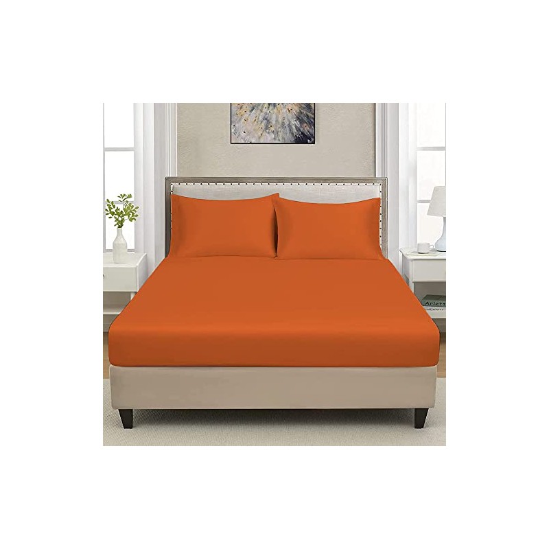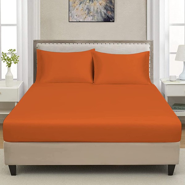 Extra Deep Luxuary Fitted Sheet 25cm Mattress Sheets 50% Cotton 50% Polyester By JRI® (King, Orange)