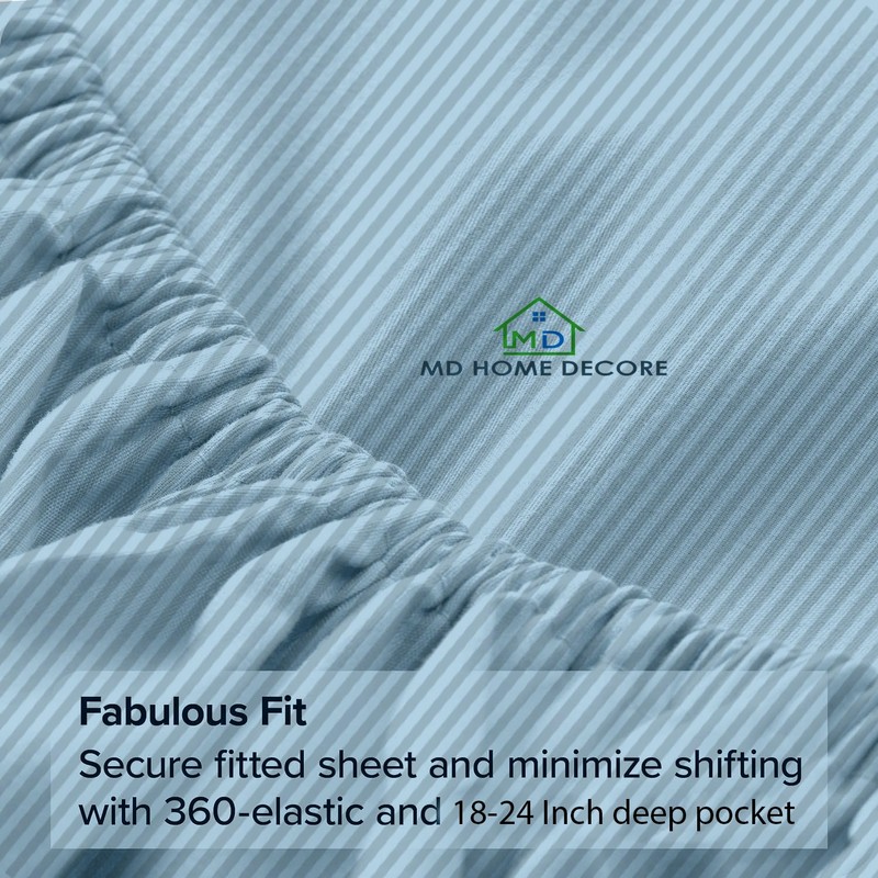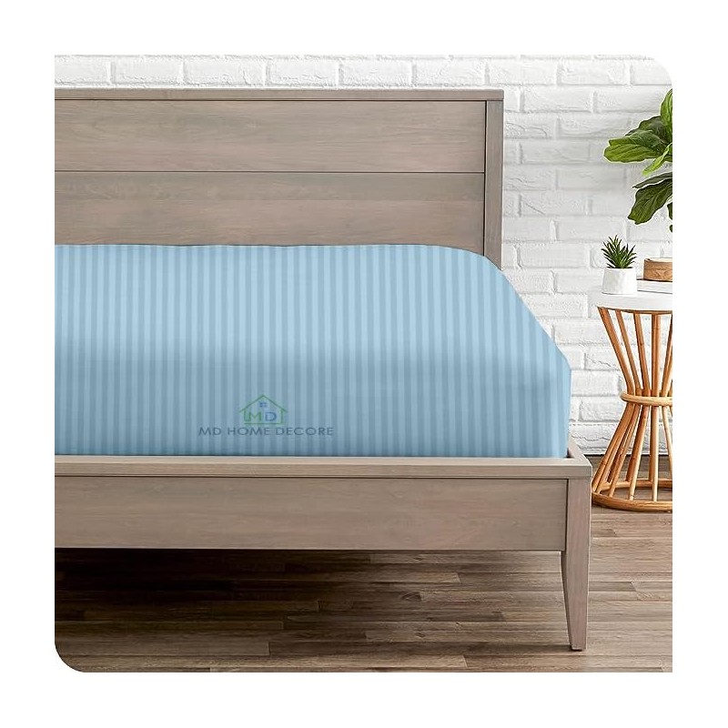 Extra Deep Pocket King Fitted Sheet Only, 100% Egyptian Cotton, High Thread Count, Fits 18–24 Inch Mattress, Light Blue Stripe, Soft & Breathable, Hotel Luxury Bottom Sheet, Single Fitted Sheet