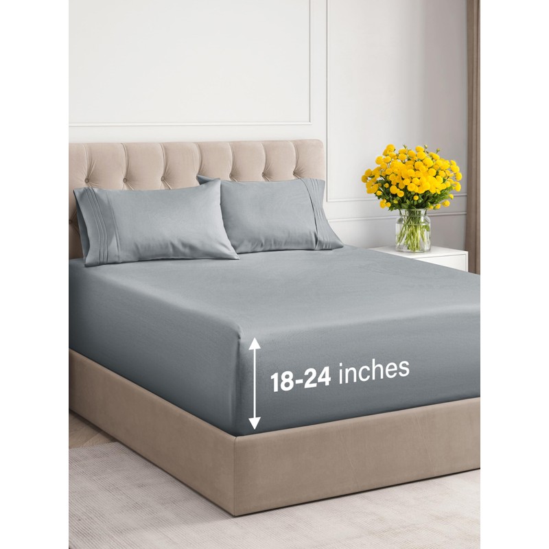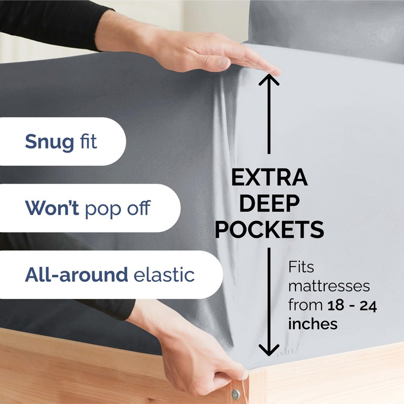 - EXTRA DEEP POCKET QUEEN SHEETS / EXTRA DEEP FITTED QUEEN SHEETS: These bed sheets are for very deep pocket mattresses. They fit any mattress with pockets that are 18, 20, 21, 22 and 24 inches deep mattresses. There's a stretchable elastic around the extra deep fitted sheet which stretches for a nice tug around your mattress. Perfect for extra tall & large mattresses. Rest assured these oversized sheets will stay on tight & stay in place!