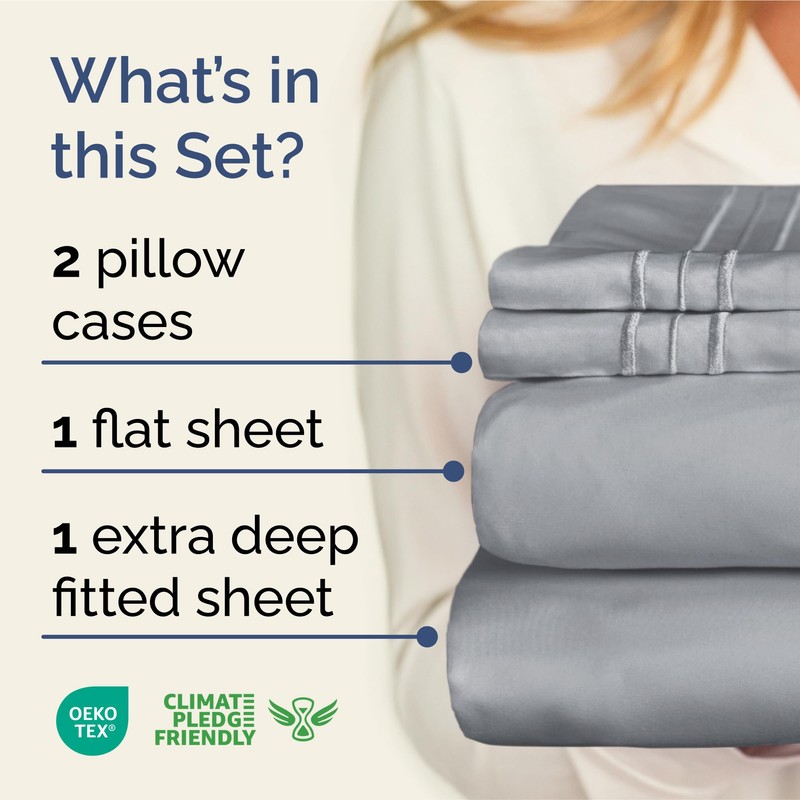 - 4 PIECE SHEET SET: This bed sheet set comes with 2 pillowcases total all with beautiful decorative embroidery design on each pillow case. The pillow cases have enclosure designs. This bedding set will accommodate your extra thick mattress perfectly.