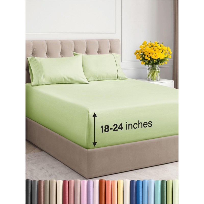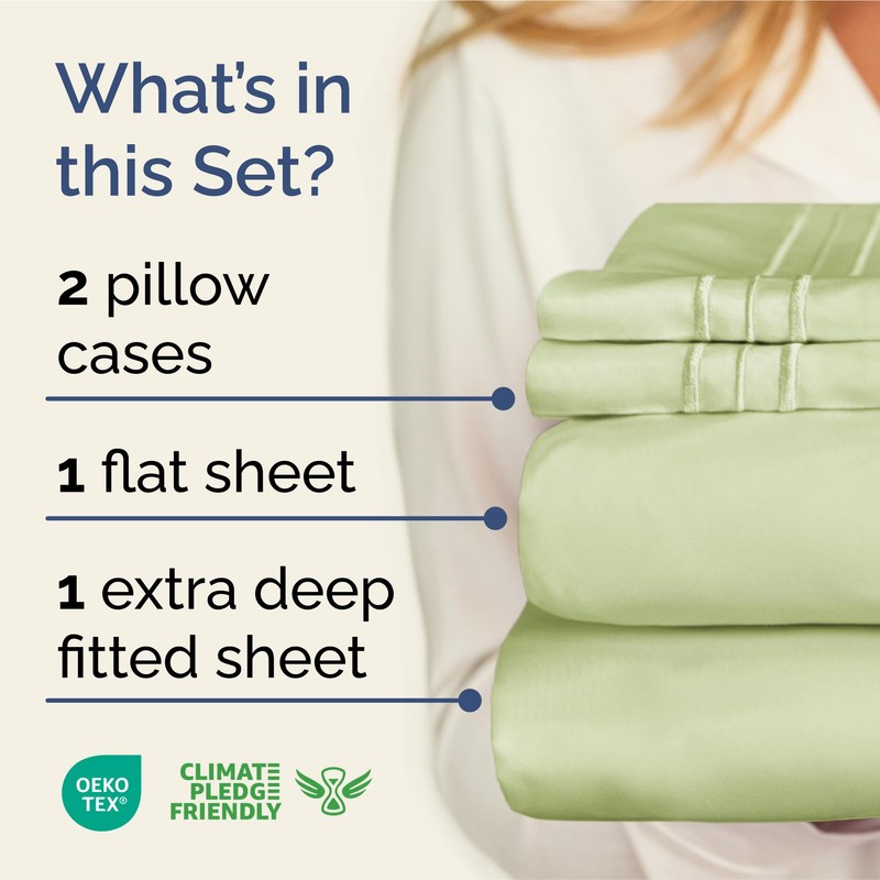 Extra Deep Pocket Queen Sheets - 4 Piece Breathable & Cooling Bed Sheets - Hotel Luxury Bed Sheet Set - Soft, Wrinkle Free & Comfy - Easily Fits Extra Deep Mattresses - Light Sage Green Sheets Set